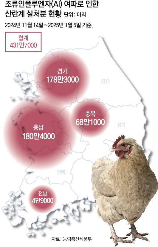 산란계 430여만 마리 살처분… 달걀 가격 1년 새 13.5% 올라