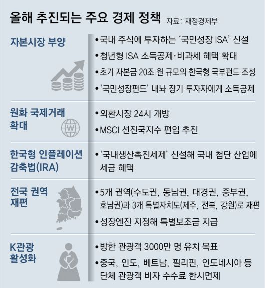 정부가 이날 발표한 ‘2026년 경제성장전략’에는 갈수록 벌어지는 양극화를 해소해 청년, 지방, 저소득층 등 성장 그늘에 있는 취약층을 지원하는 방안이 대거 담겼다. 국내 증시로 자금 유입을 독려하고, 첨단 산업 투자로 기업 성장을 뒷받침해 잠재 성장률(1%대 후반)을 웃도는 성장을 실현하고 청년 세대 기회를 늘리겠다는 취지다.