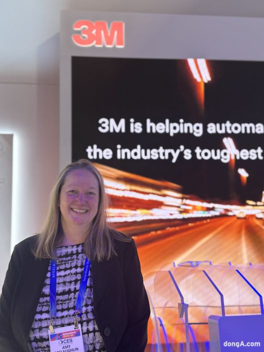 에이미 맥러플린 3M 첨단 소재 및 모빌리티 제품 플랫폼 총괄 사장이 6일(현지시간) CES가 열린 미국 라스베이거스 컨벤션센터 3M 부스에서 본보와 인터뷰를 진행하고 있다. 정진수 기자