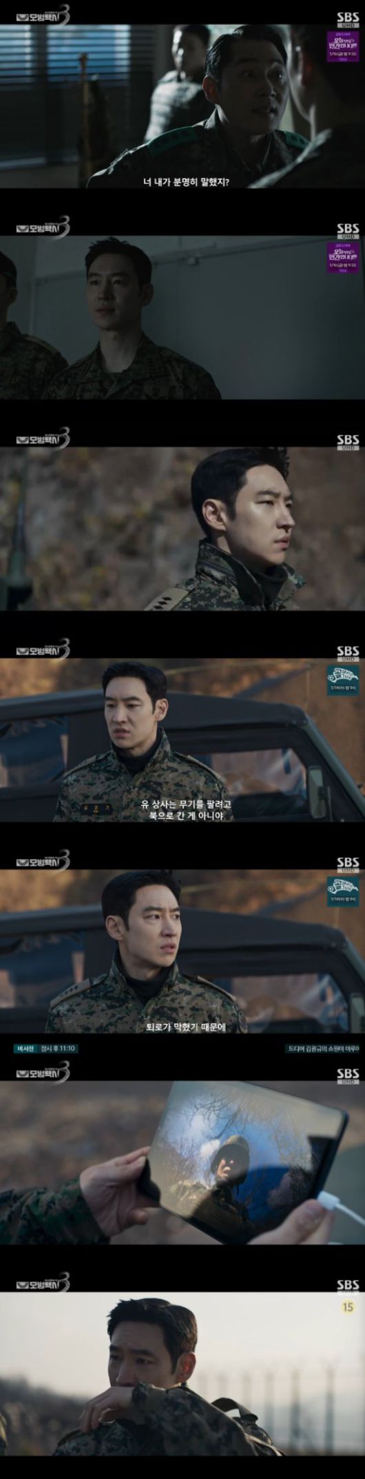 이에 김도기는 "그렇게 물어보니 저도 하나 여쭤보겠다. 북쪽과 거래를 하려고 했다는걸 어떻게 아셨냐. 대령님은 그 자리에 안 계셨지 않냐"고 물었고, 대령은 "작전 수행 중에 지 마음대로 작전 중단, 명령 불복종에 부하들 복귀 시키고, 무기들 트럭에 싣고 북으로 올라가고 있었으면 뻔하지"라면서 "내가 분명히 말했지. 남의 집 와서 니 집처럼 행동하지 말라고. 너 진짜 여기 온 목적이 뭐냐. 누가 보낸거야?"라고 분노했다.