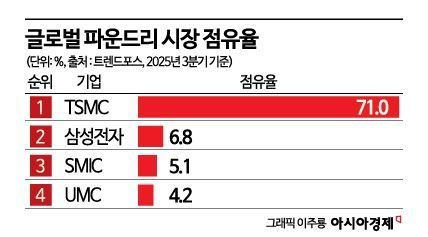 삼성전자는 시장 점유율 6.8%로 2위를 유지하고 있지만, 3위 중국 SMIC(5.1%) 등과 비교할 때 격차가 크지 않다. 인텔이 엔비디아 물량을 수주하기 시작하면 가장 위협을 받는 건 삼성전자가 될 수 있다는 우려가 나온다. 인텔은 앞서 미 행정부로부터 '지분 인수' 방식으로 지원받은 57억달러(약 8조2800억원)를 바탕으로 18A(1.8㎚급) 공정 양산을 준비하고 있다.