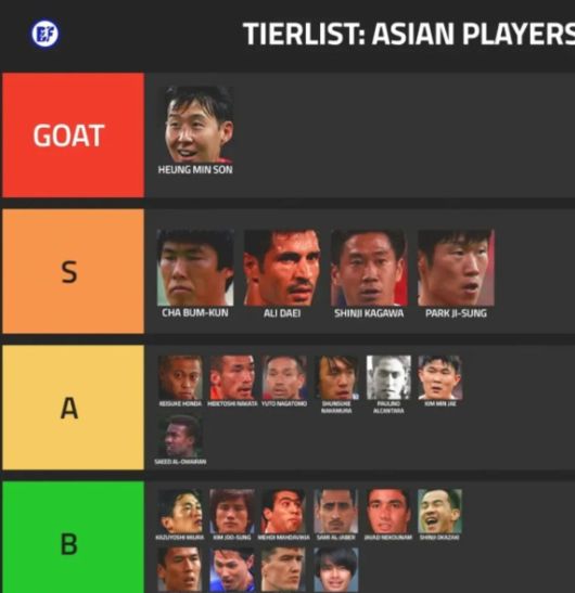 글로벌 스포츠 매체 ESPN 소속 기자 바락 피버는 지난 9일(한국시간) 역대 아시아 선수들을 GOAT, S, A, B 등급으로 나눈 티어리스트를 공개했다.