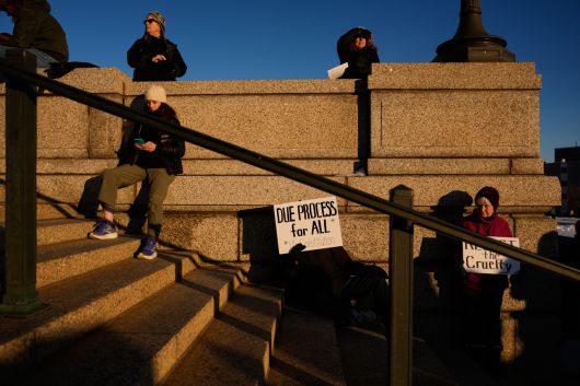 9일(현지시간) 미국 미네소타주 세인트폴의 미네소타 주 의사당에서 주 초 미니애폴리스에서 ICE 경찰관이 쏜 총에 맞아 사망한 르네 굿을 기리는 집회에 사람들이 모여 있다[. AP] |