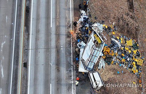 다수 사상자 나온 서산영덕고속도로 다중추돌사고 현장(상주=연합뉴스) 윤관식 기자 = 10일 경북 상주시 서산영덕고속도로에서 발생한 다중 추돌사고로 다수 사상자가 발생한 가운데, 사고로 부서진 화물차를 관계자들이 수습하고 있다. 2026.1.10 psik@yna.co.kr