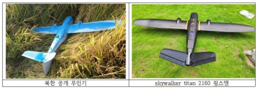 북한은 10일 조선인민군 총참모부 대변인 성명을 통해 지난해 9월과 이달 4일 한국이 무인기를 북측으로 침투시켰다고 주장했다. 홍민 통일연구원 선임연구위원은 "북한이 공개한 무인기 기체는 외관 모양으론 중국 스카이워커 테크놀로지(Skywalker Technology Co., Ltd.)사가 제조한 'Skywalker Titan 2160' 모델과 일치한다"고 밝혔다.