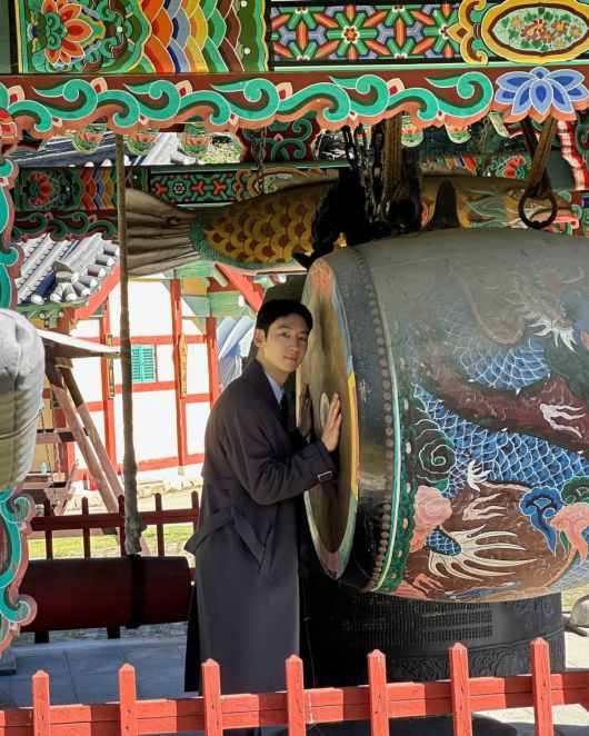 사진 속 이제훈은 전통 사찰의 대형 법고 앞에 조용히 손을 얹은 모습부터, 야외 테이블에 앉아 환하게 웃는 장면, 바다를 배경으로 진지한 옆모습을 드러낸 컷까지 다양한 분위기를 담아냈다.