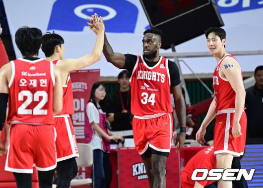 [OSEN=잠실학생체, 최규한 기자] 10일 서울 잠실학생체육관에서 ‘2025-2026 LG전자 프로농구’ 서울 SK와 수원 KT의 경기가 열렸다. 홈팀 SK는 16승 12패로 4위, 방문팀 KT는 15승 15패로 6위에 자리하고 있다. 2쿼터, SK 자밀 워니가 파울을 받으며 슛을 성공시킨 뒤 동료들과 인사를 나누고 있다. 2026.01.10 / dreamer@osen.co.kr
