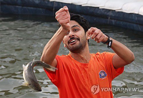 (화천=연합뉴스) 양지웅 기자 = 국내 대표 겨울 축제인 2026 화천산천어축제가 개막한 10일 강원 화천군 화천읍 화천천에 마련된 축제장 일원에서 관광객들이 산천어 맨손 잡기를 체험하고 있다. 2026.1.10
