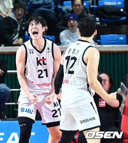 [OSEN=잠실학생체, 최규한 기자] 10일 서울 잠실학생체육관에서 ‘2025-2026 LG전자 프로농구’ 서울 SK와 수원 KT의 경기가 열렸다. 홈팀 SK는 16승 12패로 4위, 방문팀 KT는 15승 15패로 6위에 자리하고 있다. 4쿼터, KT 이두원이 덩크를 성공시킨 뒤 포효하고 있다. 2026.01.10 / dreamer@osen.co.kr