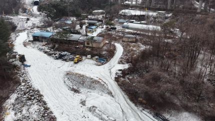 휴양림으로 진입하는 도로도 빙판이 돼 보기에도 위험해 보입니다.