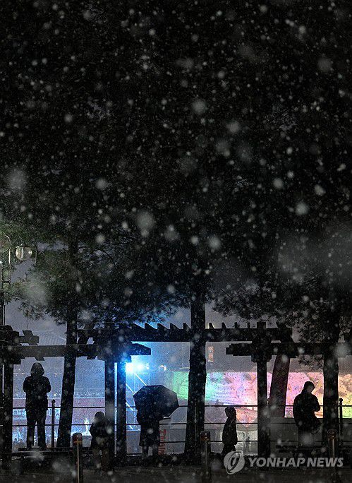 (화천=연합뉴스) 양지웅 기자 = 국내 대표 겨울 축제인 2026 화천산천어축제가 개막한 10일 강원 화천군 화천읍 화천천에 마련된 축제장 일원에서 함박눈이 내리고 있다. 2026.1.10
