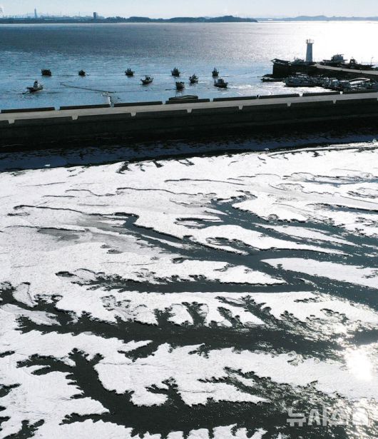 [화성=뉴시스] 김종택 기자 = 강추위가 찾아온 8일 경기 화성시 서신면 매향리 포구 갯벌이 꽁꽁 얼어있다. 2026.01.08. jtk@newsis.com |