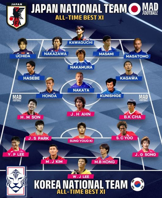 축구매체 매드풋볼은 9일 한국축구 역대 베스트11을 발표했다. 한국과 일본의 역대 베스트11이 붙으면 어느 팀이 이길까 하는 궁금증이었다.