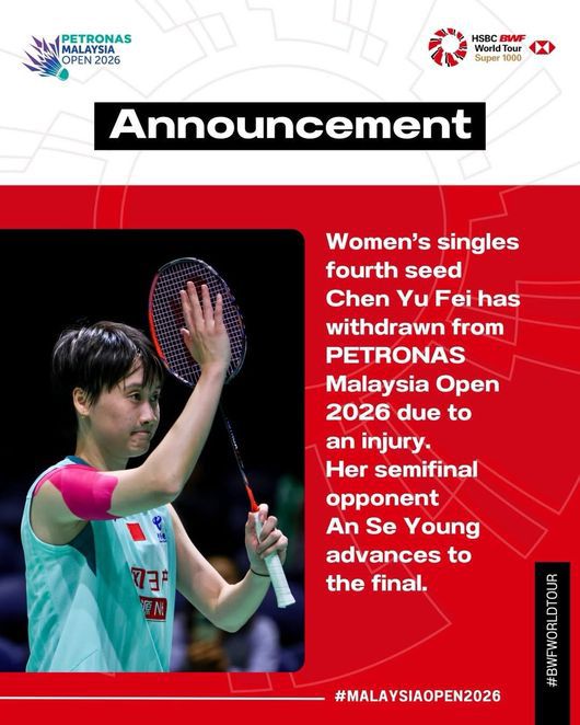 세계 랭킹 1위 안세영은 10일(한국시간) 말레이시아에서 열릴 예정이었던 2026 세계배드민턴연맹(BWF) 말레이시아 오픈(슈퍼 1000) 여자 단식 준결승전에서 천위페이(세계 4위·중국)와 맞붙을 예정이었다.