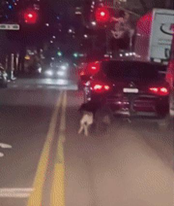 영상에는 두 마리의 개가 차량 속도를 따라잡지 못한 채 뒤처지며 고통스러워하는 모습이 고스란히 담겼다.
