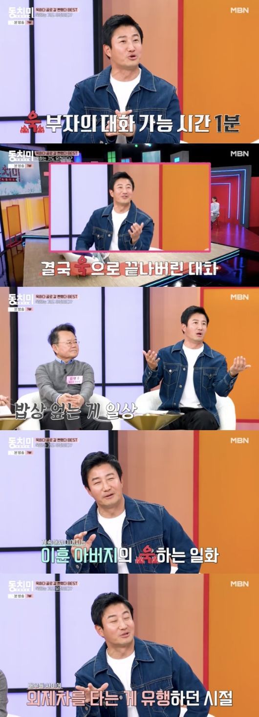 이훈은 “욱하는 걸 아버지에게 배운 것 같다. 아버지랑 대화하면 2분 넘어가면 싸운다. 윗집에서 전화 오기도 했다. 내 동기 중에 정우성이 있다. 아버지가 ‘정우성은 일을 많이 하더라’라고 하길래 욱했다”라고 말했다.