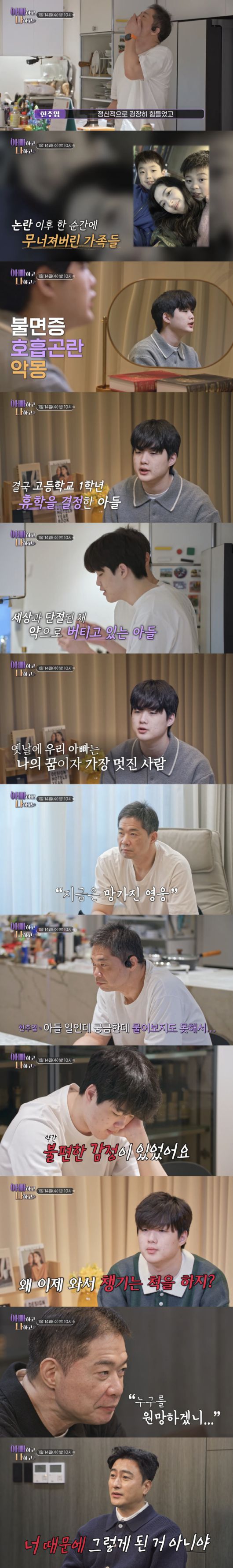 첫째 아들 현준희는 "옛날에 아빠는 내 꿈이었고 가장 멋진 아빠였다. 지금은 망가진 영웅?"이라며 아버지에 대한 복합적인 감정을 드러냈다. 이어 "아버지 사건 이후 잠을 잘 못 자고 숨 쉬는 게 답답해지고 꿈에도 자주 나온다. 상황이 좋지 않아서 휴학을 결정하게 됐다"고 털어놨다.