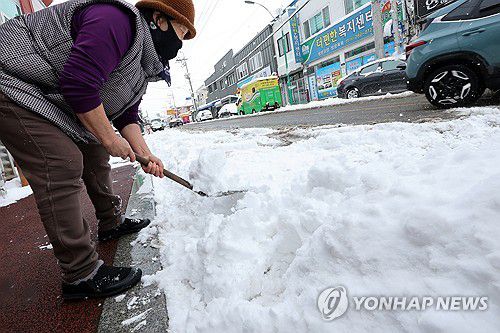 (무안=연합뉴스) 김혜인 기자 = 대설경보가 발효된 11일 전남 무안군 일로읍 한 상가에서 한 상인이 제설작업을 하고 있다. 2026.1.11 in@yna.co.kr ▶제보는 카카오톡 okjebo▶연합뉴스 앱 지금 바로 다운받기~▶네이버 연합뉴스 채널 구독하기 <저작권자(c) 연합뉴스, 무단 전재-재배포, AI 학습 및 활용 금지><저작권자(c)연합뉴스. 무단전재-재배포금지.>