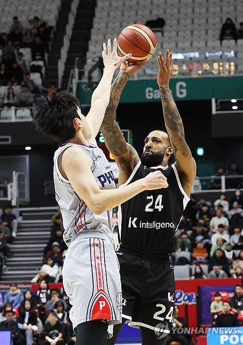 (수원=연합뉴스) 홍기원 기자 = 11일 경기도 수원KT소닉붐아레나에서 열린 프로농구 수원 KT 소닉붐과 울산 현대모비스 피버스의 경기. KT 윌리엄스가 슛하고 있다. 2026.1.11
