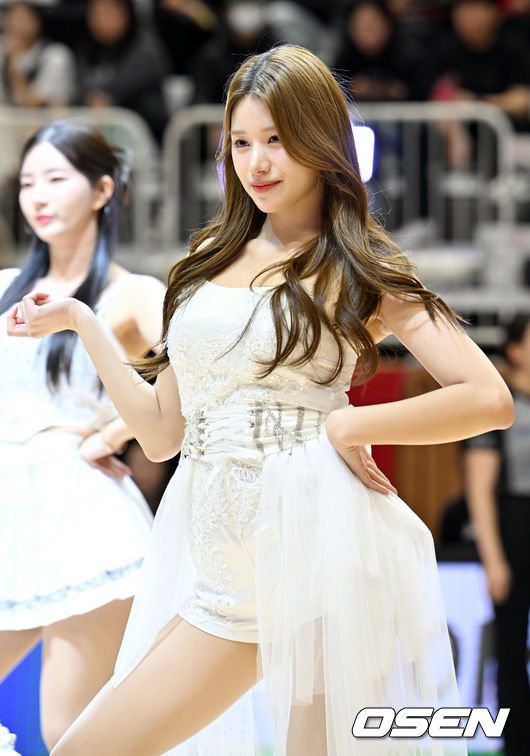 KT 이예빈 치어리더가 코트 위에서 공연을 펼치고 있다. 2026.01.11 /rumi@osen.co.kr