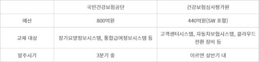 11일 관련업계에 따르면 국민건강보험공단(건보공단), 건강보험심사평가원(심평원)은 올해 대대적인 하드웨어(HW), 소프트웨어(SW) 교체 사업을 진행한다.