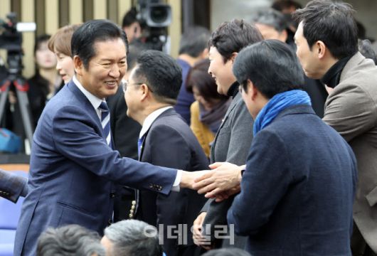 [이데일리 노진환 기자] 정청래 더불어민주당 대표가 11일 서울 여의도 국회에서 열린 제22대 국회 더불어민주당 원내대표 선출을 위한 의원총회에 참석하며 의원들과 인사하고 있다.