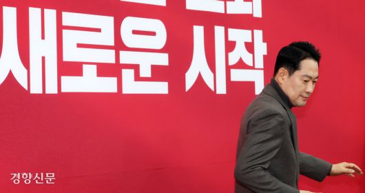 장동혁 국민의힘 대표가 지난 8일 국회에서 열린 최고위원회의에 입장하고 있다. 박민규 선임기자 |