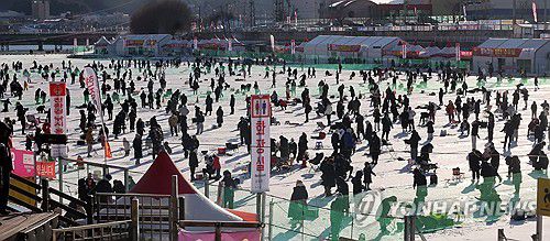 (화천=연합뉴스) 이상학 기자 = 국내 대표 겨울축제인 화천산천어축제가 개막한 지 이틀째인 11일 축제장인 화천천에서 관광객이 산천어낚시를 하고 있다. 2026.1.11