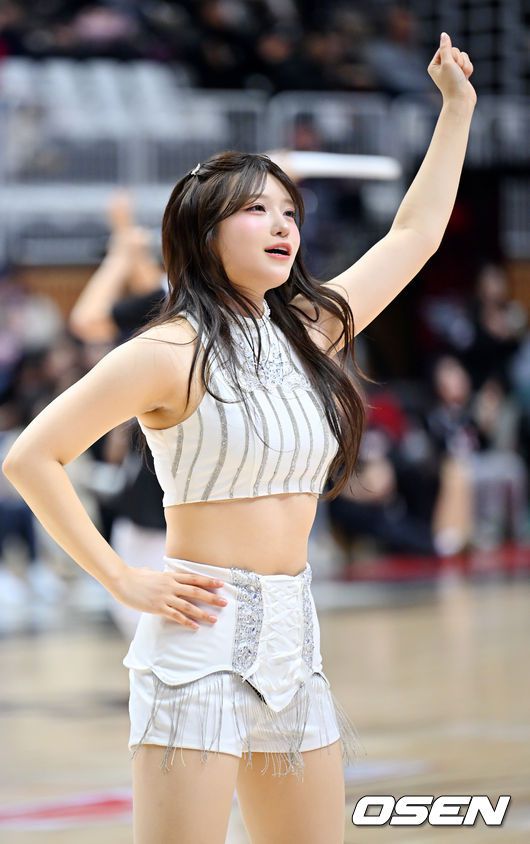 KT 김가현 치어리더가 코트 위에서 응원을 하고 있다. 2026.01.11 /rumi@osen.co.kr