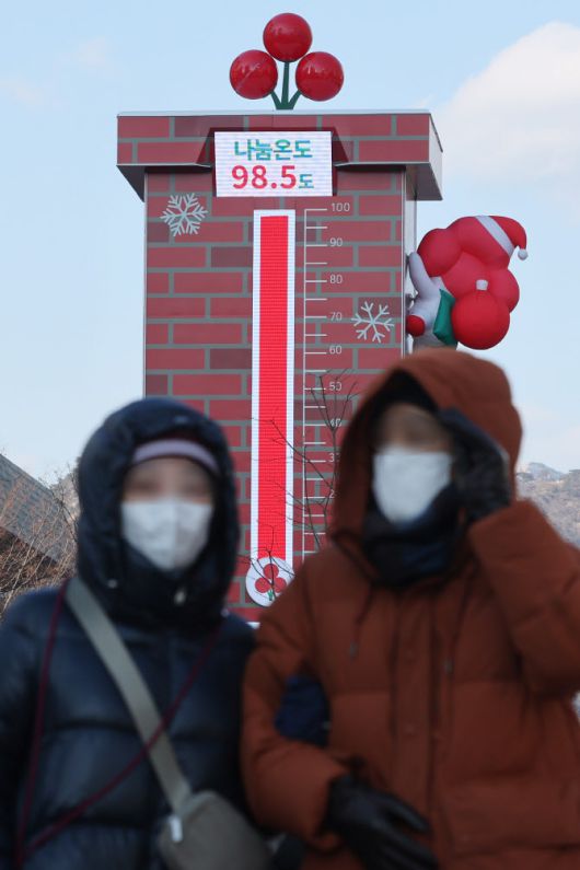 11일 서울 종로구 광화문광장에 설치된 사랑의 온도탑에 나눔온도가 98.5도를 나타내고 있다. (사진=연합뉴스) |