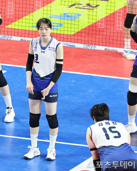 [화성(경기)=스포츠투데이 권광일 기자] 2025-2026 진에어 V-리그 여자부 IBK기업은행-현대건설 경기가 11일 경기도 화성시 화성종합경기타운에서 열렸다. 현대건설 김다인이 사인을 보내고 있다. 2026.01.11. [스포츠투데이 권광일 기자 sports@stoo.com]