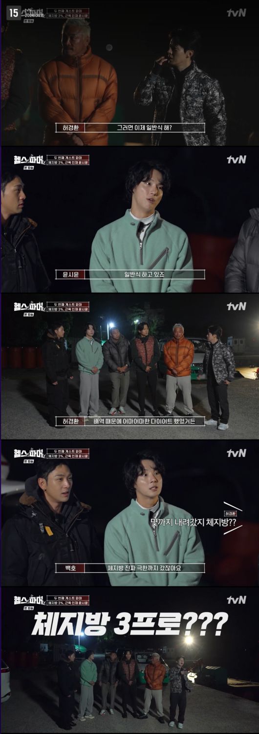 옆에 있던 백호 역시 당시를 회상하며 “체지방 진짜 극한까지 갔지 않느냐”라며 거들었다. 이에 허경환이 “체지방이 몇까지 내려갔었냐”고 묻자, 윤시윤은 무심한 듯 “한 3% 정도였다”고 답해 현장에 있던 모두를 충격에 빠뜨렸다. 운동선수들에게도 쉽지 않은 ‘체지방 3%’라는 경이로운 수치에 멤버들은 입을 다물지 못했다.