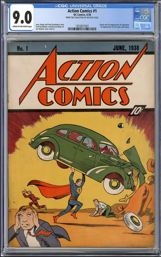 초판본은 슈퍼맨이 최초로 등장한 만화책으로, 현재 100부 미만만 존재하는 것으로 추정된다.특히 이번 경매에 나온 만화책은 한때 케이지가 가지고 있던 것이다. 케이지는 1996년 이 초판본을 15만달러에 구매했으나 2000년 도둑맞았다. 해당 만화책은 2011년 캘리포니아의 한 창고에서 발견돼 케이지에게 돌아갔다. 케이지는 6개월 뒤 경매에 내놓았고, 220만달러에 판매됐다.