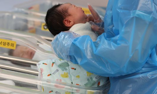 한 병원 신생아실에서 간호사들이 신생아를 돌보고 있다. 연합뉴스
