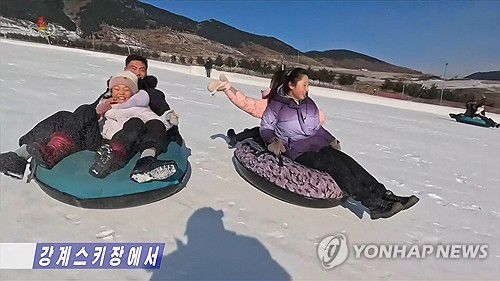(서울=연합뉴스) 북한 강계스키장으로 수많은 주민들이 찾아와 다채로운 겨울철 체육활동을 하고 있다고 조선중앙TV가 11일 보도했다. [조선중앙TV 화면] 2026.1.11