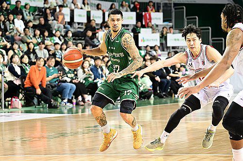 (서울=연합뉴스) 11일 강원도 원주 DB프로미 아레나에서 열린 2025-2026 LG전자 프로농구 정규리그 원주 DB와 안양 정관장의 경기. 원주 DB 이선 알바노가 드리블을 하고 있다. 2026.1.11 [KBL 제공. 재판매 및 DB 금지]