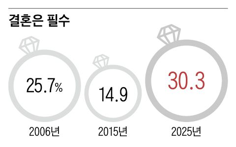 ‘결혼은 필수’라고 생각하는 국민이 10년 전보다 늘어난 것으로 조사됐다. 조선일보와 서울대가 실시한 국민 의식 조사에서 결혼의 필요성에 대해 찬성한다고 답한 응답자는 30.3%로 나타났다. 이는 10년 전인 2015년(14.9%)보다 15.4%포인트(p) 증가한 수치다. 2006년(25.7%)과 비교해도 4.6%p 높다.