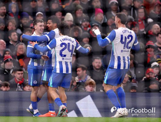 브라이튼이 선제골을 터뜨렸다. 전반 11분 웰벡이 올려준 크로스가 튀었고 그루다가 문전에서 쉽게 마무리했다. 브라이튼이 1-0으로 앞서갔다.