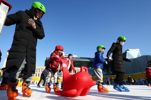 하루 새 기온이 5∼8도가량 뚝 떨어진 11일 오전 서울 중구 서울광장 스케이트장에서 시민들이 즐거운 시간을 보내고 있다. 12일에도 전국 대부분 지역의 아침 기온이 영하 10도∼영하 5도로 떨어지는 등 평년보다 추운 날씨가 예보됐다. 바람도 강하게 불어 체감온도는 더 낮을 것으로 보인다. 이날 아침 최저기온은 영하 14도∼영하 3도, 낮 최고기온은 0∼10도로 예보됐다.