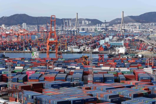 1일 산업통상부가 발표한 ‘2025년 연간 및 12월 수출입 동향’에 따르면 지난해 수출은 1년 전보다 3.8% 증가한 7097억 달러(1025조2600억원)를 달성, 역대 최대 실적을 기록했다. 이날 부산 남구 신선대(사진 아래) 및 감만(위) 부두 야적장에 수출입 컨테이너가 쌓여 있다. 2026.01.01. 부산=뉴시스 |