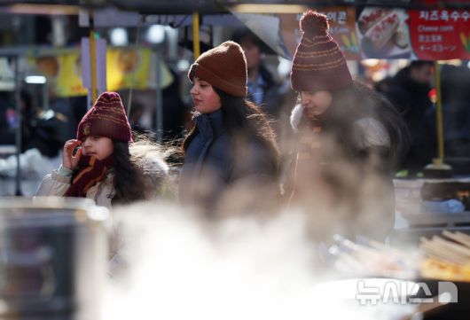 [서울=뉴시스] 김진아 기자 = 영하권 추위가 이어지고 있는 11일 서울 중구 명동을 찾은 여행객들이 두꺼운 옷차림으로 이동하고 있다. 2025.01.11. bluesoda@newsis.com |