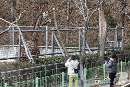 9일 광주우치동물원에서는 기린이 추운날씨에도 운동하며 관광객들을 맞고 있다. 2026.1.9/뉴스1 ⓒ News1 김태성 기자 |
