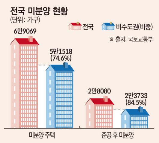 주택 공급 지표 또한 지역별 명암이 엇갈린다. 국토교통부가 발표한 ‘2025년 10월 주택통계’에 따르면 전국 미분양 주택은 6만9069가구로 집계됐는데, 전체 74.6%인 5만1518가구가 비수도권에 몰려 있다. 특히 ‘악성 미분양’으로 분류되는 준공 후 미분양 주택은 2만8080가구로 전체 물량의 84.5%는 지방에 쌓여 있는 것으로 나타났다.