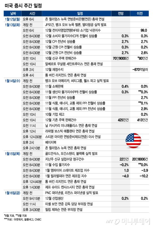 미국 증시 주간 일정_0112/그래픽=최헌정 |