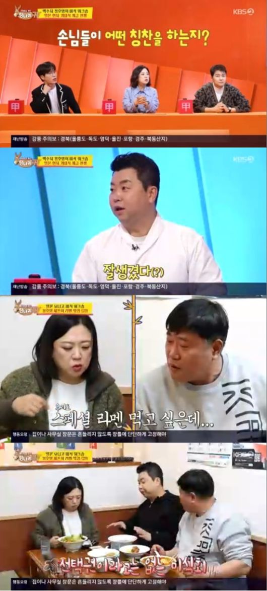 김숙과 전현무는 정호영 식당을 방문한 손님들이 어떤 칭찬을 하고 가는지 궁금해 했다.