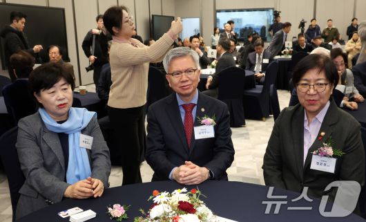 지난 8일 서울 용산구 대한의사협회에서 열린 2026년도 의료계 신년하례회에서 김택우 대한의사협회장, 정은경 보건복지부 장관, 서영교 더불어민주당 의원이 대화를 하고 있다. /뉴스1 ⓒ News1 김명섭 기자 |