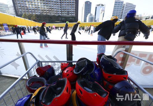 [서울=뉴시스] 김근수 기자 = 수도권 지역에 강추위가 계속되는 11일 오전 서울시청 앞 광장에 마련된 스케이트장에서 시민들이 나들이를 즐기고 있다. 2026.01.11. ks@newsis.com |
