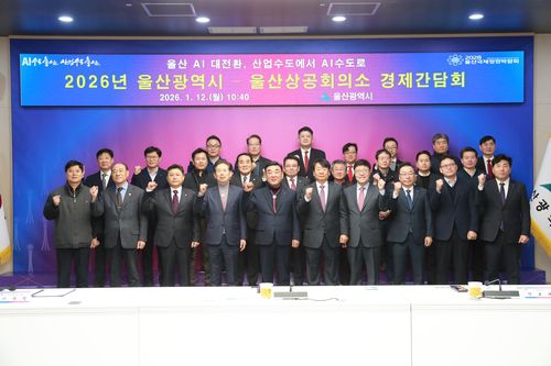 (울산=연합뉴스) 장지현 기자 = 울산시는 12일 오전 시청 대회의실에서 '2026년 울산광역시·울산상공회의소 경제간담회'를 열어 급변하는 산업 환경 속 울산 경제의 미래 성장전략을 공유하고 지역 기업의 의견을 수렴한다.