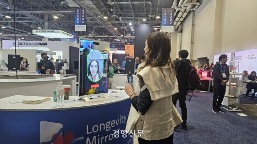 세계 최대 가전·정보기술(IT) 전시회 CES 2026이 한창인 지난 8일(현지시간) 미국 라스베이거스 베니시안 엑스포 D홀은 거울에 얼굴을 비춰보려는 이들로 긴 줄이 늘어서 있었다. 캐나다 스타트업 ‘누라로직스’가 선보인 ‘장수 거울’이다.
