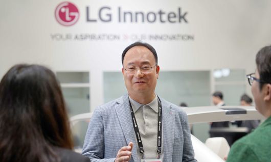 문혁수 LG이노텍 사장이 지난 7일(현지시간) 미국 라스베이거스에서 취재진과 만나 LG이노텍의 향후 사업 방향성을 소개하고 있다. LG이노텍 제공 |